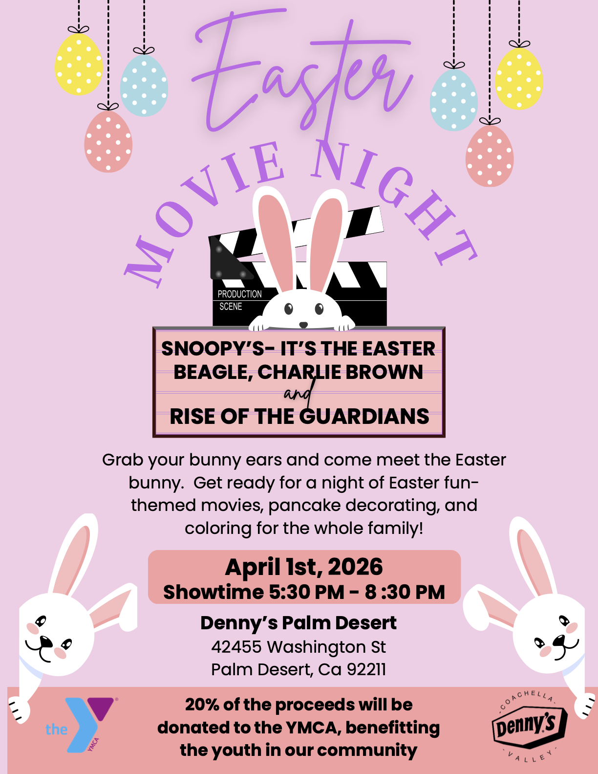 Grab your bunny ears and come meet the Easter bunny. Get ready for a night of Easter fun themed movies, pancake decorating, and coloring for the whole family!